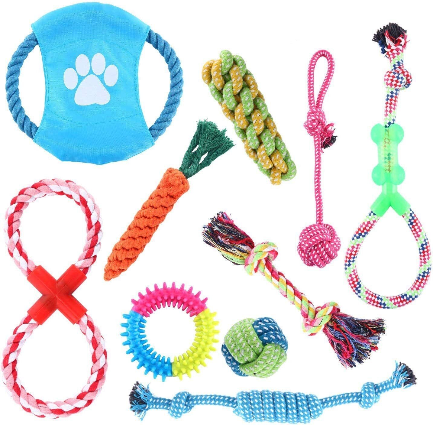 10Pack Dog Toys Braided Rope Durable for Aggressive Chewer Interactive Rope Toys