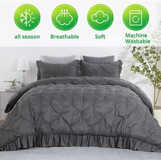 - King Comforter Set, Reversible Cotton Bedding with Matching Shams, Modern Home