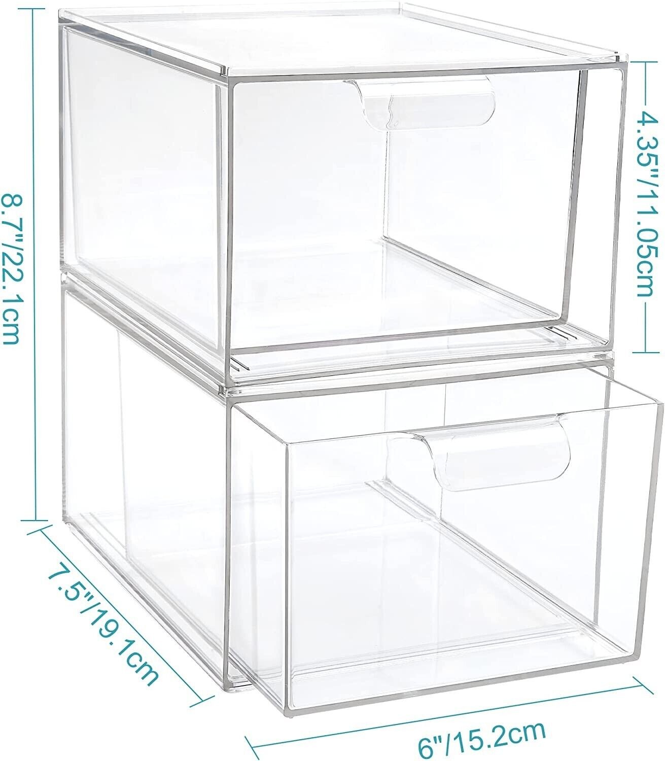 2 Pack Stackable Makeup Organizer Storage Drawers, 4.4'' Tall Acrylic Bathroom O