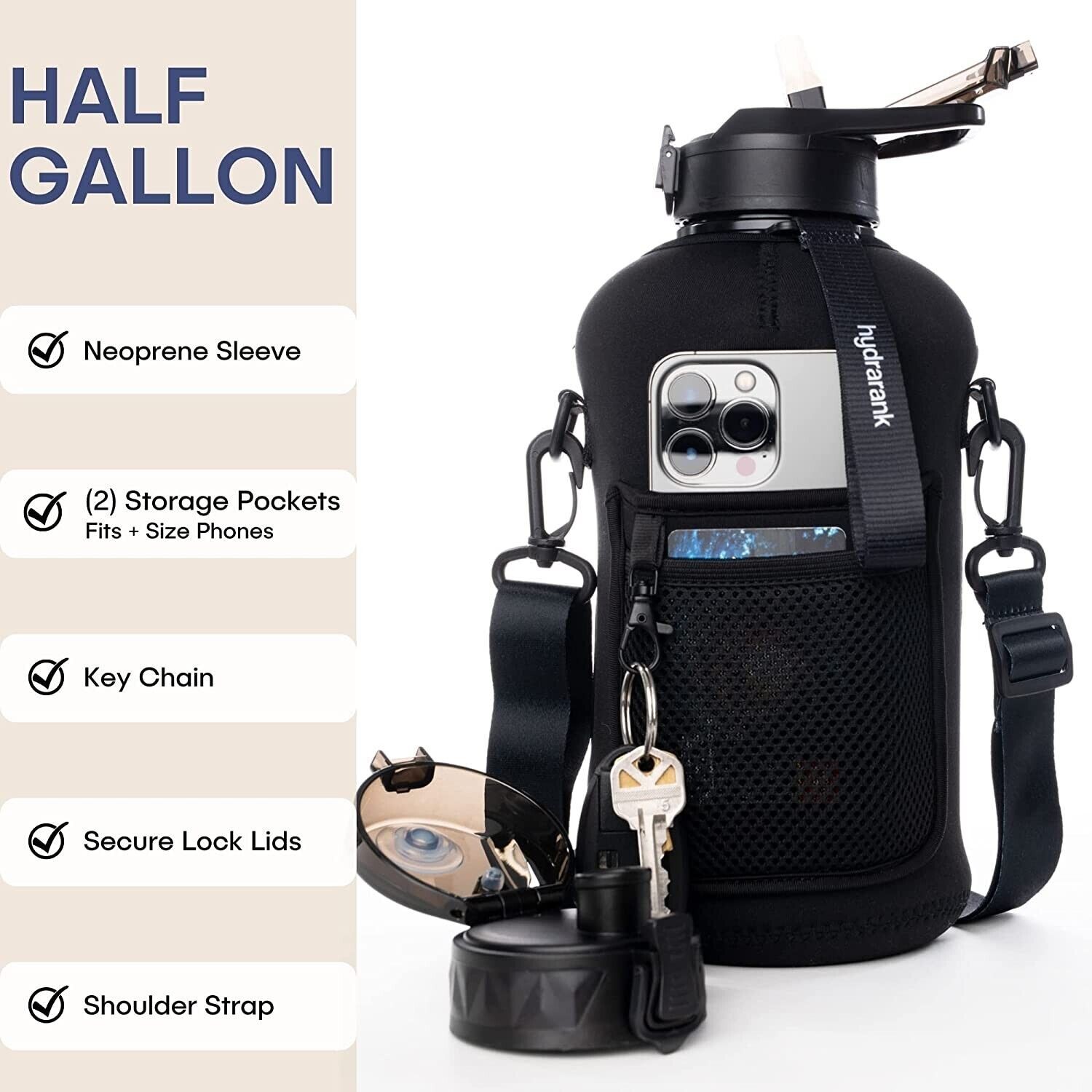 Half Gallon Water Bottle with Straw and Chug Lid-2.2L Gym Water Jug, Abyss Black
