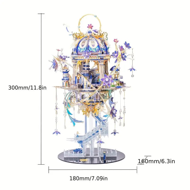 About this item 【About the music box】the background music is I WILL ALWAYS LOVE YOU 【About the light sets】: the lights and chargeable batteries are included inside of the 3D metal puzzle box. 【About the stand】 the colorful stand is included in the 3D metal puzzle packing box. 【MU tools】: MU assembling tools is not included(Tools set can be found in our store.You can find us on the product package for broken pieces and more questions). Parts can be easily cut off from the sheets. 【Recommended for