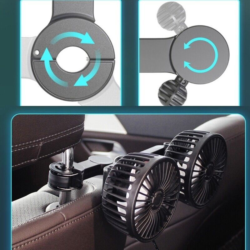 Rotatable Car Cooling Fan Fan Mini USB Vehicle Fan Backseat Clip Fan W/3 Speeds